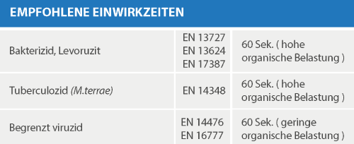 Mit der quartären Ammoniumverbindung in der Formulierung bietet es eine schnelle, zuverlässige und breitbandige Desinfektion. Ideal für die schnelle Desinfektion zwischen Behandlungen, wenn kurze Einwirk-zeiten erforderlich sind. Enthält Enzyme in der Formulierung, die das Einwirken des Desinfektionsmittels in die Kontaktfläche unterstützen. Kompatibel mit alkoholempfindlichen Materialien von medizinischen Geräten wie Acrylglas. Enthält Korrosionsinhibitoren.